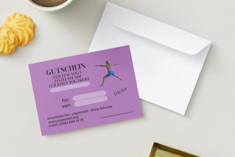 Zur Auswahl stehen Gutscheine für Einzelstunden (60 Min. oder 90 Min.) und Gutscheine für alle von mir angebotenen Yogakurse.